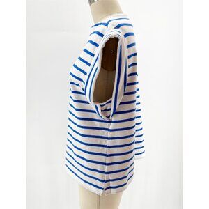 Free Assembly 100% Cotton Nautical Blue & White Stripe Boatneck Top