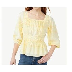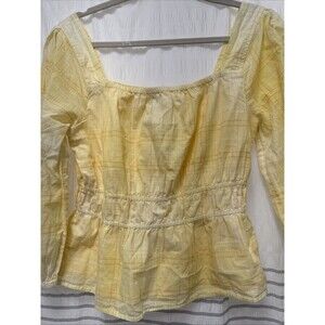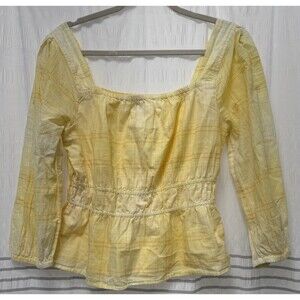 Free Assembly Blouse Yellow Medium Top 3/4 Sleeve Square Neck Peplum Hem Cadmium
