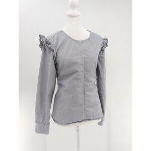 Free Assembly Blue White Striped Sleeve Long Ruffle Sleeve Top Size Medium
