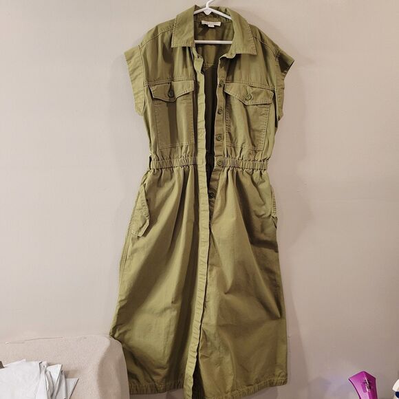 Free Assembly Button Midi Trench Dress Womens Utility Green No Belt Size Xs