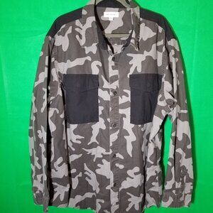 Up for sale is - Free Assembly Camo Men XXXL Black Gray Camouflage Utility Long Sleeve Military - EUC