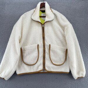 Free Assembly Coat Womens Small Ivory Beige Trim Fleece Zip Pockets Mock Neck