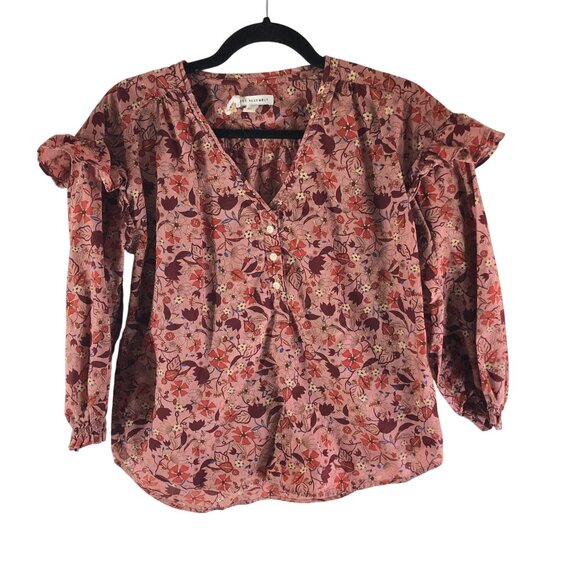 Free Assembly Floral Ruffle Long Sleeve Blouse Pink Boho Peasant Cotton XS