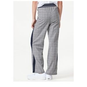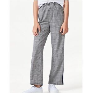 • Material: 63% Polyester/34% Rayon/3% Spandex • Care: Machine washable • Country of Origin: Imported • Fit: Relaxed • Closure: Pull-on styling • Pockets: Two side pockets • Features: Classic plaid print with varsity stripe details; elastic waist with drawstring tie for comfort; wide leg • Wide Leg Varsity Stripe pants for Girls from Free Assembly