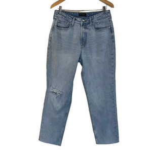 Free Assembly Light Wash Jeans 10 Distressed Frayed Hem High Waisted Denim Pants