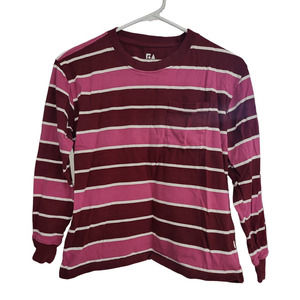 Free Assembly Maroon & Pink Striped Long Sleeve Shirt - Size L (10-12)