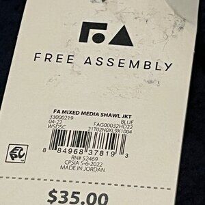 Free Assembly Mixed Media Shawl Jacket Size L NWT Navy, Green & Black