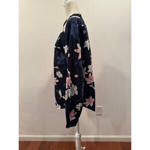 Free Assembly Navy Blue with Pink and White Flowers V-Neck Top - size Large