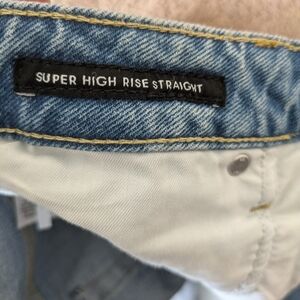 Free Assembly Patchwork Super High Rise Straight Blue Jeans sz 16 Organic Cotton