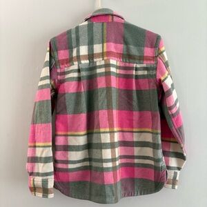 Free Assembly Pink & Green Plaid Button Down Shacket - Size Small