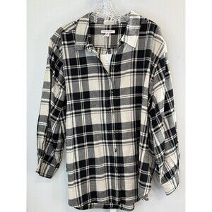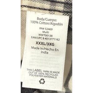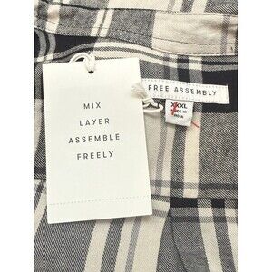 Free Assembly Plaid Cotton Button Down Shirt 3X Black Cream Flannel Fall Core