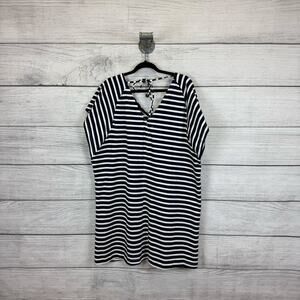 Free Assembly Plus Size Blue White Striped Short Sleeve Mini Dress Size XXXL