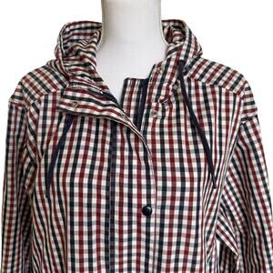 Free Assembly Raincoat Jacket Size XXXL Gingham Red Navy White Hood Zip Snaps
