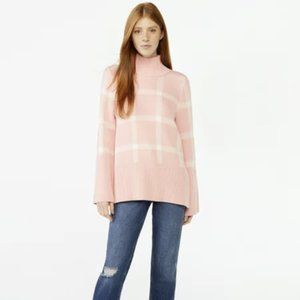 Free Assembly Rib Turtleneck Sweater Medium Pink Plaid Midweight New