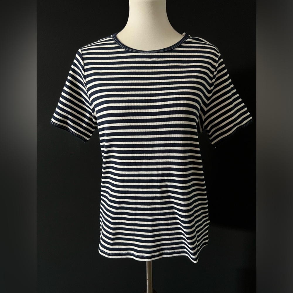 Brand New! Super soft striped material with ribbed detailing. Color: Navy Blue/White