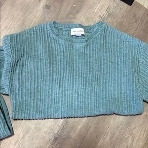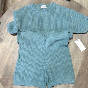 Stylish ribbed knit set short sleeves. Features a comfortable fit and a chic design.