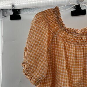 Free Assembly Short Sleeve Orange/White Checkered Top Women's Size Small