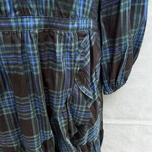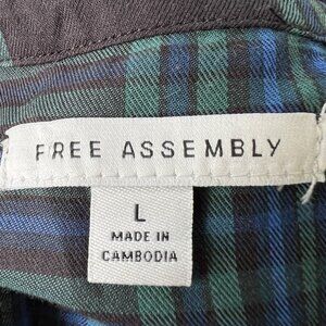 Free Assembly Size Large L Blue Green Tartan Plaid Dress V-Neck Mini Faux Wrap