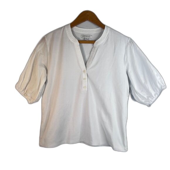Free Assembly Vneck Cropped Puff Sleeve Semi Sheer White Blouse Size Large