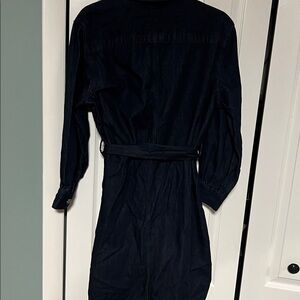 Free Assembly Women's Belted Denim Utility Mini Dress with Long Sleeves