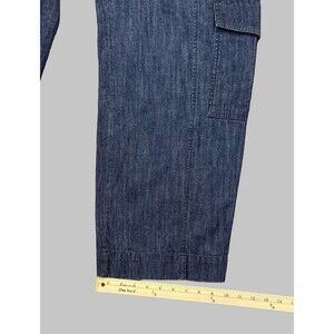 Free Assembly Women’s Chambray Cargo Pants Medium Blue 100% Cotton Pull On Crop