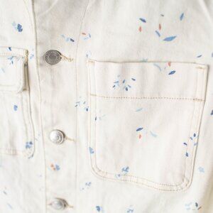 Free Assembly Women’s Denim Barn Jacket Size Small Floral Print Cream NWT - see photos for measurements