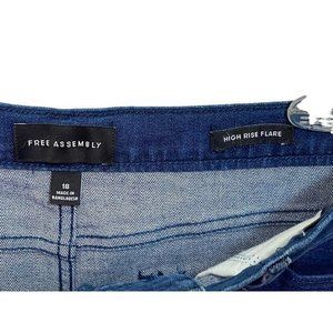 Elevate your vintage-inspired fashion with these Free Assembly women's high-rise flare jeans. The solid dark wash is complemented by button closure with zip fly, while the 99% cotton/1% elastane fabric ensures a comfortable fit. These retro-themed jeans have a flared style and a high-rise waist. The approximate inseam is 28.5 inches, making them perfect for any occasion.