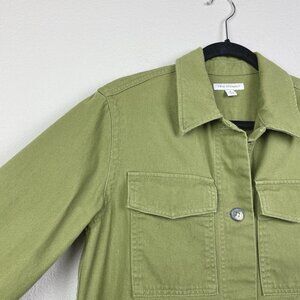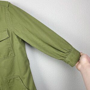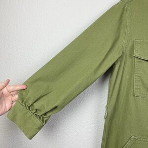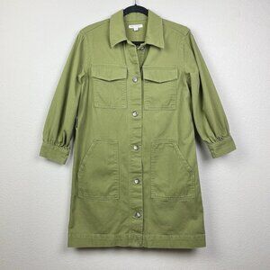Free Assembly Women's Medium Utility Mini Dress 3/4 Sleeves Canvas Button Front Army Green No Belt Preppy Pockets