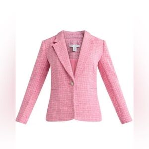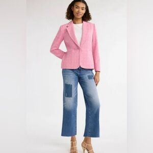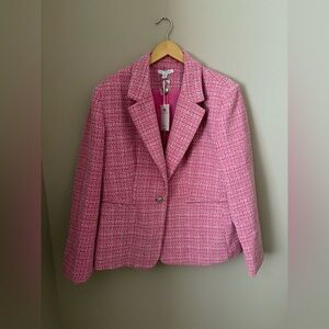 Keywords: Free Assembly, women's blazer, pink tweed, 2XL, business attire, classic style, notch lapel, single button, fully lined, mid-length, long sleeve, regular fit, smart-casual, new with tags.