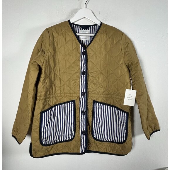 Free Assembly Women's Quilted Cinched Waist Liner Jacket Large Brown Pockets New