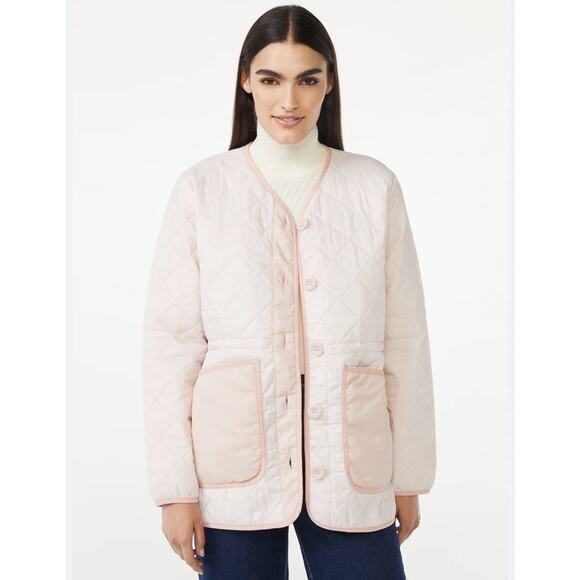 Free Assembly Women's Quilted Cinched Waist Liner Jacket Mauve Chalk Size Med