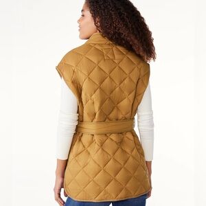 Free Assembly Women's Quilted Tan Fall Winter Vest with Belt XS