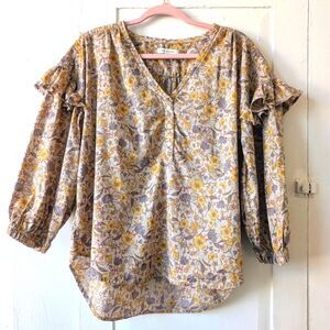 Free Assembly Women's Ruffle Blouse Large Yellow Beige Ruffle Sleeve Peasant
