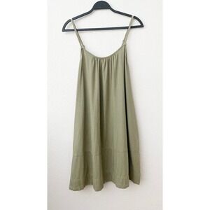 Free Assembly Women's Swing Mini Dress Linen Blend Olive Green Adjustable Straps