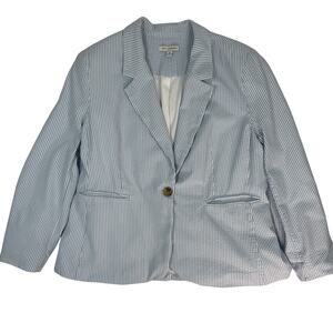 Free Assembly XL Blue White Stripe Cotton Blazer Lined Seersucker Jacket
