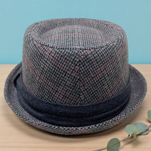 Free Authority Sz L/XL Gray Plaid Fedora Gangster Hat Trilby Cuban Wool Blend