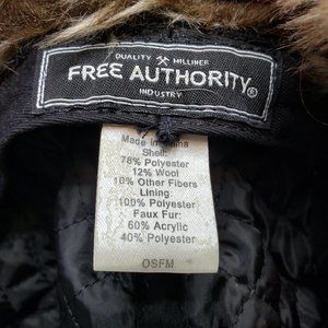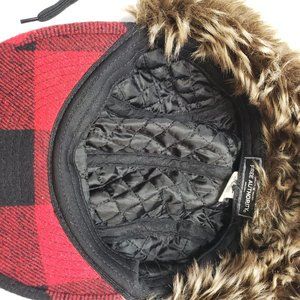 Free Authority Trapper Wool Blend Faux Fur Winter Cap Hat Red & Black Plaid EUC