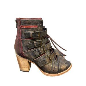 Free Bird By Steven Leather Heeled Open-Toe Sandals With Buckles Black & Burgund