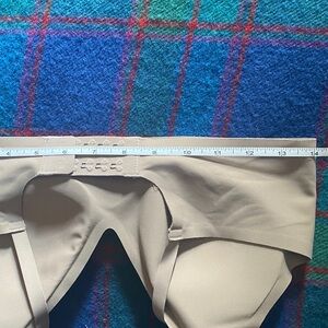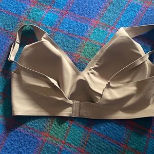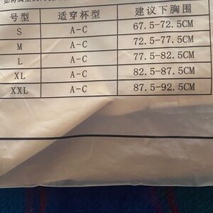 Brand new in package, super soft wireless with removable pads in cups. Feels like your second skin. Has been tried on and seems to run a bit small, more appropriate for someone who takes a M-L Please see photos of unstretched measurements while in the 2nd & 4th set of hooks.