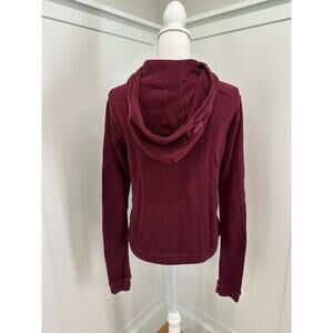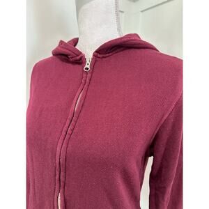 Size 1(S). Color is maroon. 67/33 Promodal/cotton blend. Missing drawstring at hood. No other flaws noted.