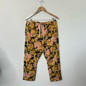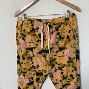 Free City Vintage Silk Kimono Studded Joggers Yellow Floral Women’s Size S