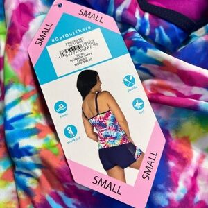 Free Country 2 Piece Tankini Womens Rainbow Navy UPF 50+