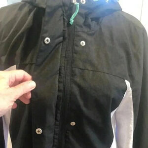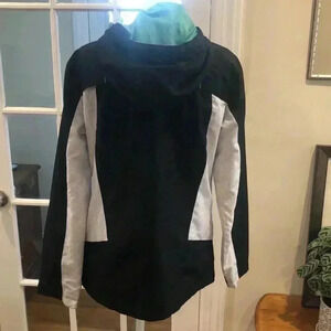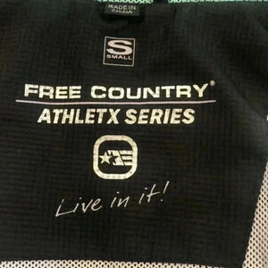 Free Country Athletx Series zippered front and snap coat with hood. Two side zippered pocket.  18” from armpit to armpit and 23.5” long. Some wear on front left hand side of coat - see photo.