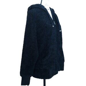 Free Country Hoodie Zip Jacket Plush Teddy Pile Pockets Black