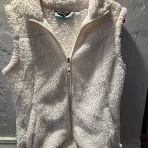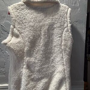 Soft ivory sherpa vest with a cozy texture. Ideal for layering in cooler weather.