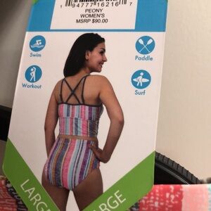 NWT Free Country two piece ladies bathing suit. SPF 50+, and feel free with the supportive fit. Multi color and comes in sizes Large and X-Large.