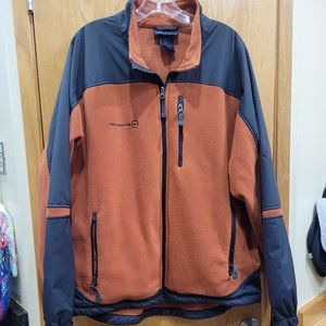 Free Country Men's Grey & Rust Full Zipper Fleece Jacket Large EUC