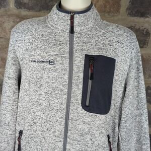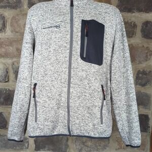 Free Country sweater fleece utility jacket. Men's size Large. Light gray. Full zip closure.