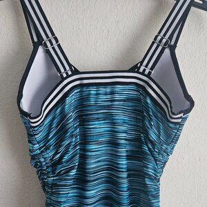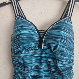 Free Country NWOT Black Striped Tankini Swimsuit Top Adjustable Strap Sides M