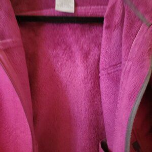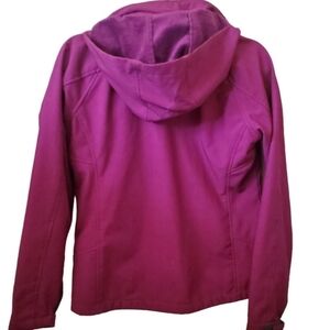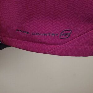 Free Country Pink Soft Shell Faux Fur Lined Weatherproof Jacket, Size S. Pit to pit 20", shoulder to hem 23", Full Zip, Zip Pockets, Hook And Loop Closure at worst cuffs to keep out weather, Detachable Hood. Ski, Hike, Outdoors. Good Pre-Owned Condition. could use to be cleaned, some wear around cuffs as pictured
